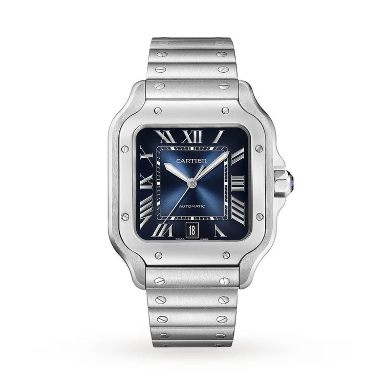 کارتیه د سانتوس اتومات تمام استیل با صفحه جذاب سرمه ایی برای آقایون خاص پسند و شیکپوش